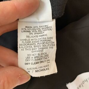 Self: 66% rayon, 29% nylon, 5% spandex.Lining: 95% poly, 5% spandex. Dry clean only. Fully lined. Hidden back zip and hook closures. Back button closures. Front seam split. Revolve Style No. NHOX-WD131. Manufacturer Style No. ND278P.