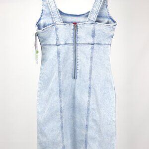 Designed in a bustier-style fashion, Rewash's denim midi dress is just the addition your wardrobe has been missing—Unique Exposed Red Back Zipper with a Velvet Lining to Protect Your Back Skin.