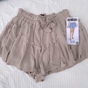 REWASH Jr’s Sz XS Tan Rayon Gauze Lightweight Elastic Tie Ruffle Flowy Shorts
