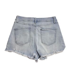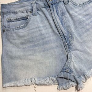 Trendy light blue jean shorts. They feature a Super High Waist and a frayed hem in a classic five-pocket style. Super comfortable, stretchy fit.