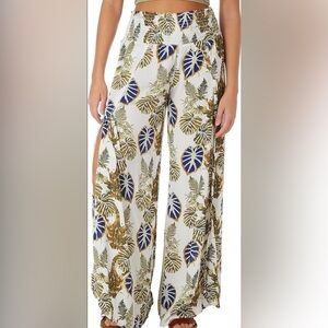REWASH Smocked Wrap Wide Leg Pants Palm Print XL Boho Gypsy Beach Vacation EUC