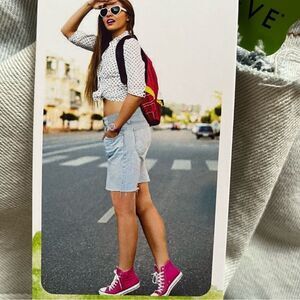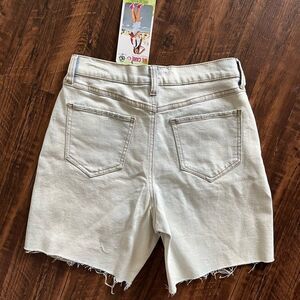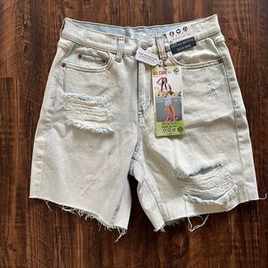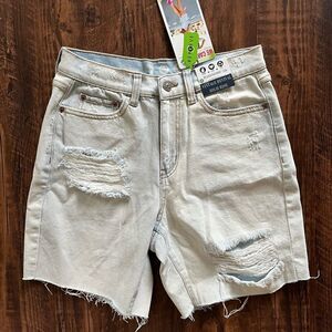 New with the tags - relaxed dad shorts size 3/26 juniors sizing. Vintage revival high rise. Made with recycled fabrics. Peace love eco. Raw hem distressed