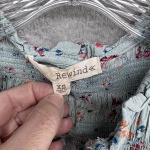 REWIND - NWOT Turquoise Floral Blouse with Tassel Tie Detail