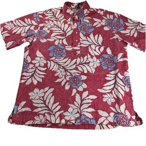 REYN SPOONER Reverse Print Mens Hawaiian Shirt Commemorative Sz L Red Blue