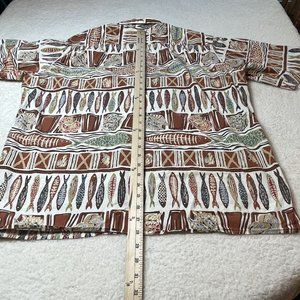REYN SPOONER Vintage Hawaiian Shirt Geometric Fish Short Sleeve Men's Size XL