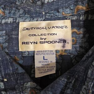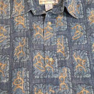 REYN SPOONER DIETRICH VAREZ BLUE PETROGLYPHS REVERSE HAWAIIAN SHIRT MENS LARGE