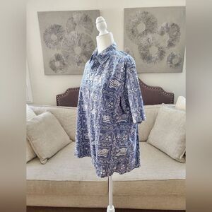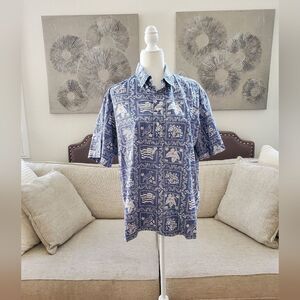 🌴REYN SPOONER🌴 Reverse Print Aloha Button Front Shirt - [Large, Blue/White]