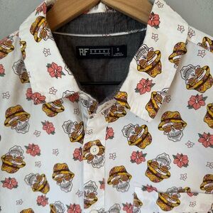 RF Brand Men's Short Sleeve Skull Floral Whimsigoth Button Up Shirt-Size Small