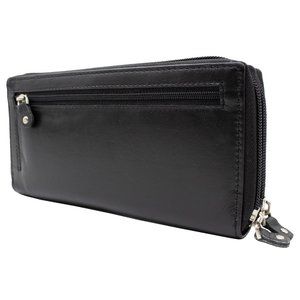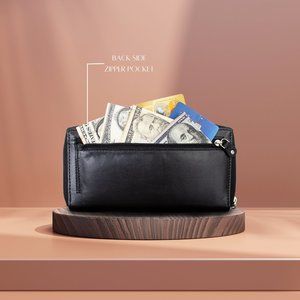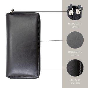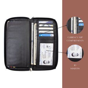 RFID Blocking Leather Black Checkbook Cover, ID Holder, Credit Card & Currency