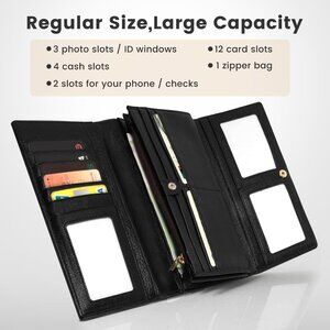 Features: This minimalist and fashionable leather wallet is perfect for busy women on the go. It can hold 12 cards, 4 cash slots, and has a secure zipper compartment for coins or small accessories. The angled phone slot provides quick, one-handed access, making it super practical for daily use.