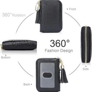 RFID Credit Card Holder Faux Leather Small Wallet for Women Black