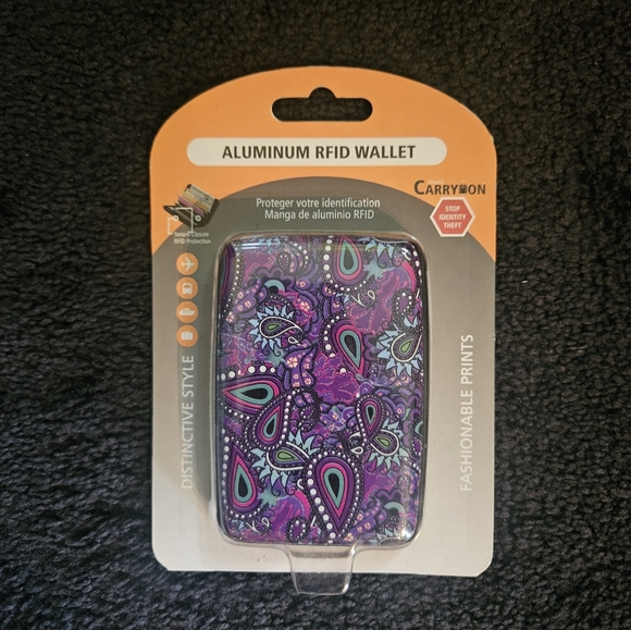 Aluminum RFID wallet with 7 pockets. Holds up to 20 credit cards. Unopened.