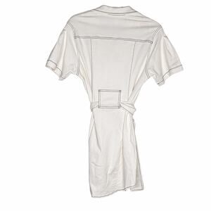 R.G. Kane Rocky Dress in Natural. Size XS / Extra Small. Features collared, front button closure, patch pockets, detachable waist tie, short sleeves, mini length. 70% cotton, 29% recycled cotton, 1% elastane. Excellent condition, no flaws.