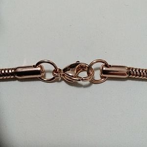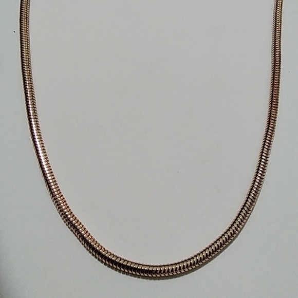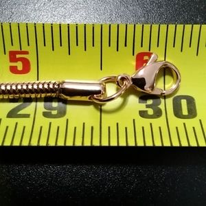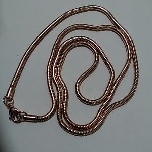 ION plated 14 KT rose gold over hypoallergenic stainless steel 3.1 mm 30" snake chain with lobster claw clasp. Like new. Never worn.