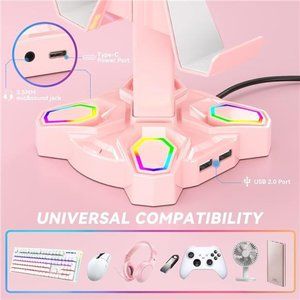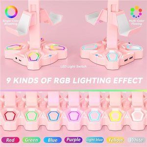 RGB Headphone Stand with 9 Light Modes - Rotatable Pink Game Headset Holder