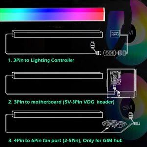 🧿2-Way to Control: Connected to GIM hub by 4-pin header or Connected to Motherboard by 5V ARGB 4-pin header.