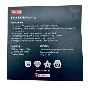 Once upon a time, your selfies lacked that perfect glow. Enter the RGB Selfie Halo Light, a charming companion with 18 vibrant color modes and adorable cat ears to elevate your photos. Simple to clip on, it promises to highlight your moments with extra magic and creativity.
