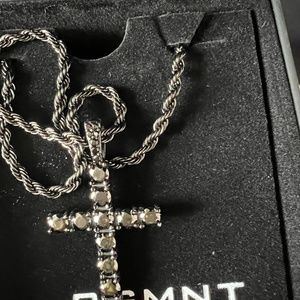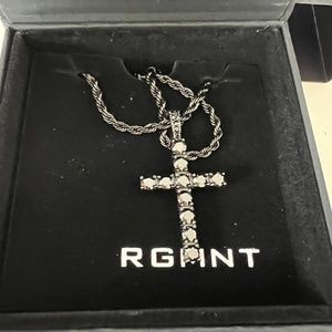 Elevate your style with our Iced Cross Pendant on a classic rope chain, meticulously designed to be the modern accessory staple. This striking pendant features a hand-crafted cross adorned with brilliant cubic zirconia stones, adding a touch of sophistication and spirituality to your look. Make a bold and meaningful statement with this iconic accessory, seamlessly merging fashion and faith into one exquisite piece. - 22.5" Chain with a 42mm x 23mm Pendant. NEVER WORN.