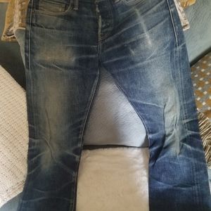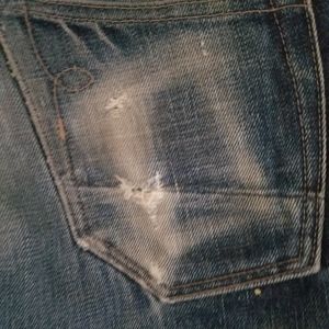These Jean's are FABULOUS! If they still fit me, I'd be keeping them. This style is very rare with perfect whiskering, fades in all the right spots, button fly, 100% stiff cotton/denim, in fantastic condition! please zoom in on photos to see detail/condition.