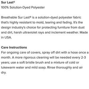 Durable Sur Last® fabric is 100% solution-dyed polyester