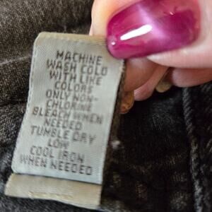RH Ruff Hewn Studded Black Denim Button Up Jean Jacket Long Sleeves - Size PL (Petite Large); Material -100% Cotton; Care - Machine Wash Cold, Tumble Dry Low; Made in China; Studding Across Chest Top, Button up Center Front, 2 Button Flap Chest Pockets, Cuff Button Sleeve Ends, Band Across Bottom of Jacket;