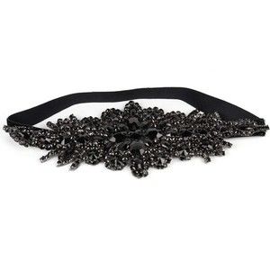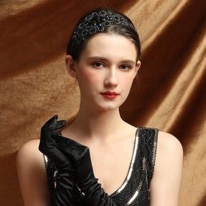 Black Rhinestone and Beaded 1920s Great Gatsby Vintage Bride Headpiece Flapper Headband Hair Accessory