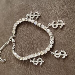 Dollar sign charms are .5" x 1". Lobster claw clasp.