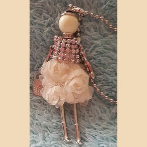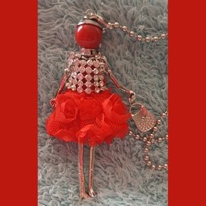 RHINESTONE LADY PENDANT IS MADE UP OF FLOWERED SKIRT, RHINESTONE TOP, PEARL FOR THE HEAD.
