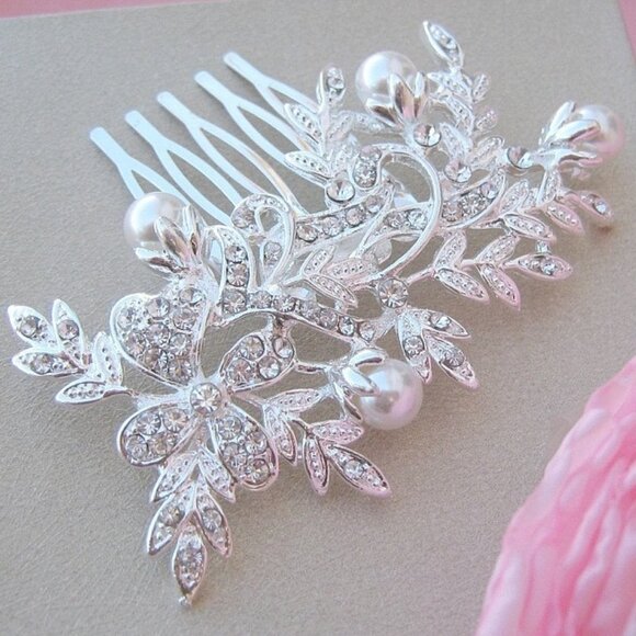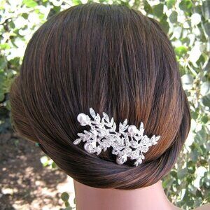 This lovely haircomb features a floral leafy pattern, suitable for various special occasions such as weddings, proms, and even date night. Perfect for updos or worn with loose waves.