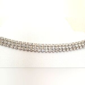 RHINESTONE NECKLACE CHOKER SILVER TONE 3 ROWS CLEAR SPARKLY 15" VINTAGE