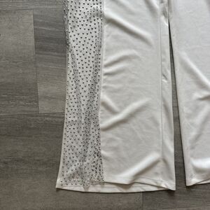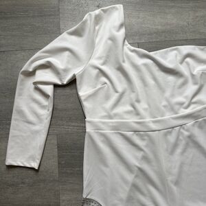 The RHINESTONE ON MESH ONE SHOULDER PLUS SIZE JUMPSUIT in size 3XL is a stylish one-piece garment designed for women. The jumpsuit features a white color with a solid pattern and is adorned with rhinestones for added glamour. The one-shoulder neckline adds a touch of sophistication to the outfit, making it a fashionable choice for various occasions. Perfect for those looking for a trendy and flattering jumpsuit in a larger size.