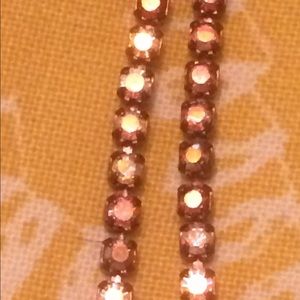 ✳️RHINESTONE STRAND EARRING SET📌CAN BE WORN TOGETHER OR MIX AND MATCH FOR AN EDGIER LOOK!📌FOR PIERCED EARS (NO EARRING BACKS)📌SHORTER DOUBLE STRAND COLOR IS BLACK WITH IRIDESCENT PINK STONES📌SINGLE LONG STRAND IS PINK WITH IRIDESCENT PINK STONES📌GREAT CONDITION!