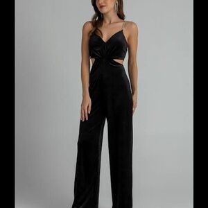 🖤 RHINESTONE STRAP VELVET JUMPSUIT