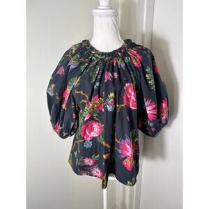 RHODE Black Floral Half Puff Sleeve Organic Cotton Shirt Sz S