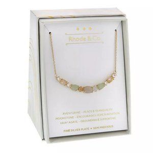Rhode & Co fine chain necklace with semi precious gemstones: Aventurine, Moonstone and Gray Agate.