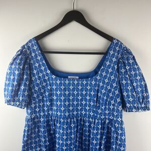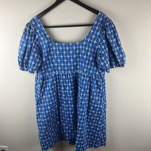 RHODE Women's Eyelet Mini Dress Pockets Embroidered Target Blue 1X Boho.