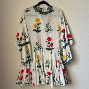 RHODE Floral Embroidered Dress - White, Red, Yellow, Green