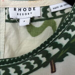 Charming RHODE dress with floral embroidery. Features vibrant red, yellow, and green accents. Perfect for a stylish look.