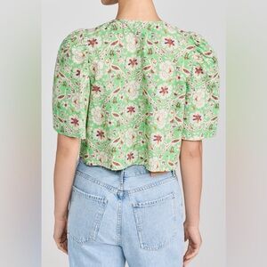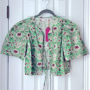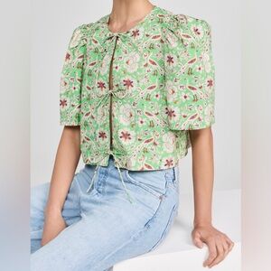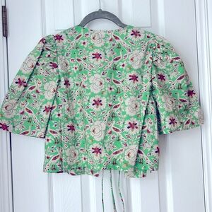 Tie Blouse in a light green color with intricate flower / bird designs.