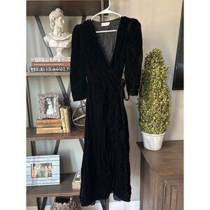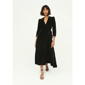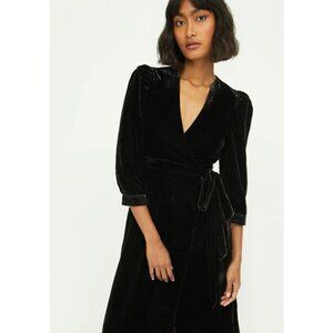 RHODE Lainey Velvet Midi Wrap Dress Black Womens Size XS