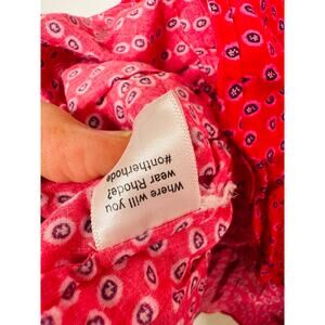 RHODE Red Printed 100% Cotton Short Sleeve V-Neckline Puff Sleeves Top size XL