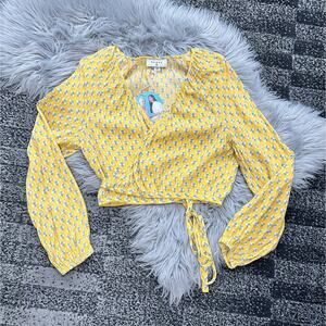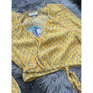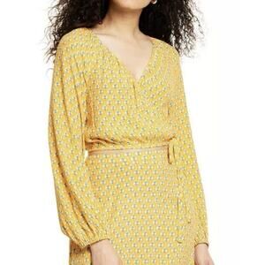 RHODE Women's Dainty Lotus Print Wrap Top Yellow Turquoise Size Medium NWT