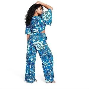 RHODE X Target Size Large Floral Zinnia Linen Blend Side Cutout Jumpsuit Blue