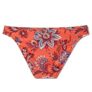 This Large Leafy Floral Print Hipster Medium-Coverage Bikini Bottom from RHODE x Target lets you bring your unique style to the beach or pool. Made from soft fabric with added spandex and full lining, this hipster bikini bottom features a low-rise cut and pull-on style. Large leafy floral print in dark orange and blue finish off the stylish look.