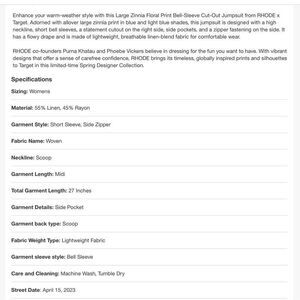 RHODE x Target Large Zinnia Floral Print Bell Sleeve Cut Out Jumpsuit Sz XXL NWT