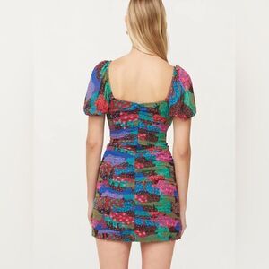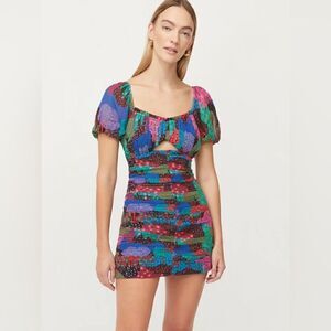 Your new favorite party dress has arrived: meet Clara. Designed in a fitted mini silhouette with rouching at the bodice and skirt for a figure-flattering fit, it’s finished with a sweetheart neckline and modest cutout at the chest. In our Enchanted Woods Mini Print, it’s an artistic take on magical fairytales.