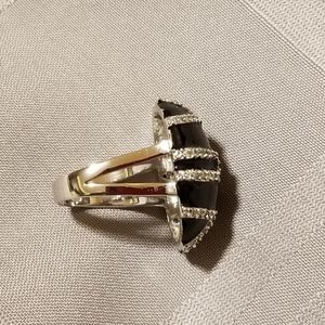 Rhodium plated enamel ring. Size 9.5.