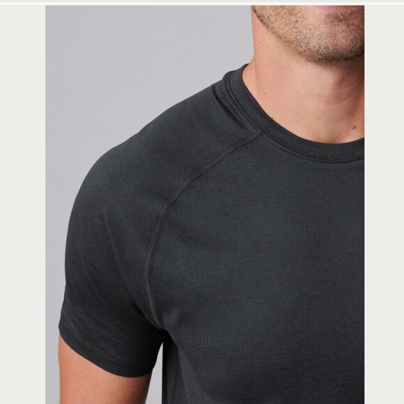 RHONE Atmosphere Tee, Black, Workout Shirt, Curved hem