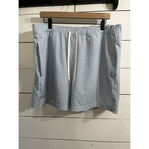 RHONE Blue and White Striped Swim Trunks
