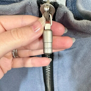 There is a bleach spot on the back arm at the cuff, otherwise in good condition. Some light fading/wear to the inside of collar